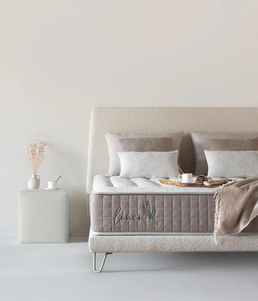 Descubre Linen V4 y siente el lujo natural. Un colchón que combina frescura, transpirabilidad y una acogida que acompaña tu descanso.