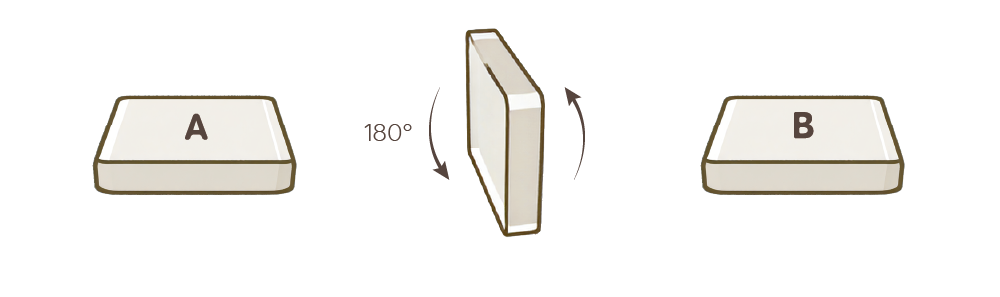 Rotar el colchón significa girarlo 180º, de manera que la zona de los pies quede donde antes estaba la cabeza y viceversa.