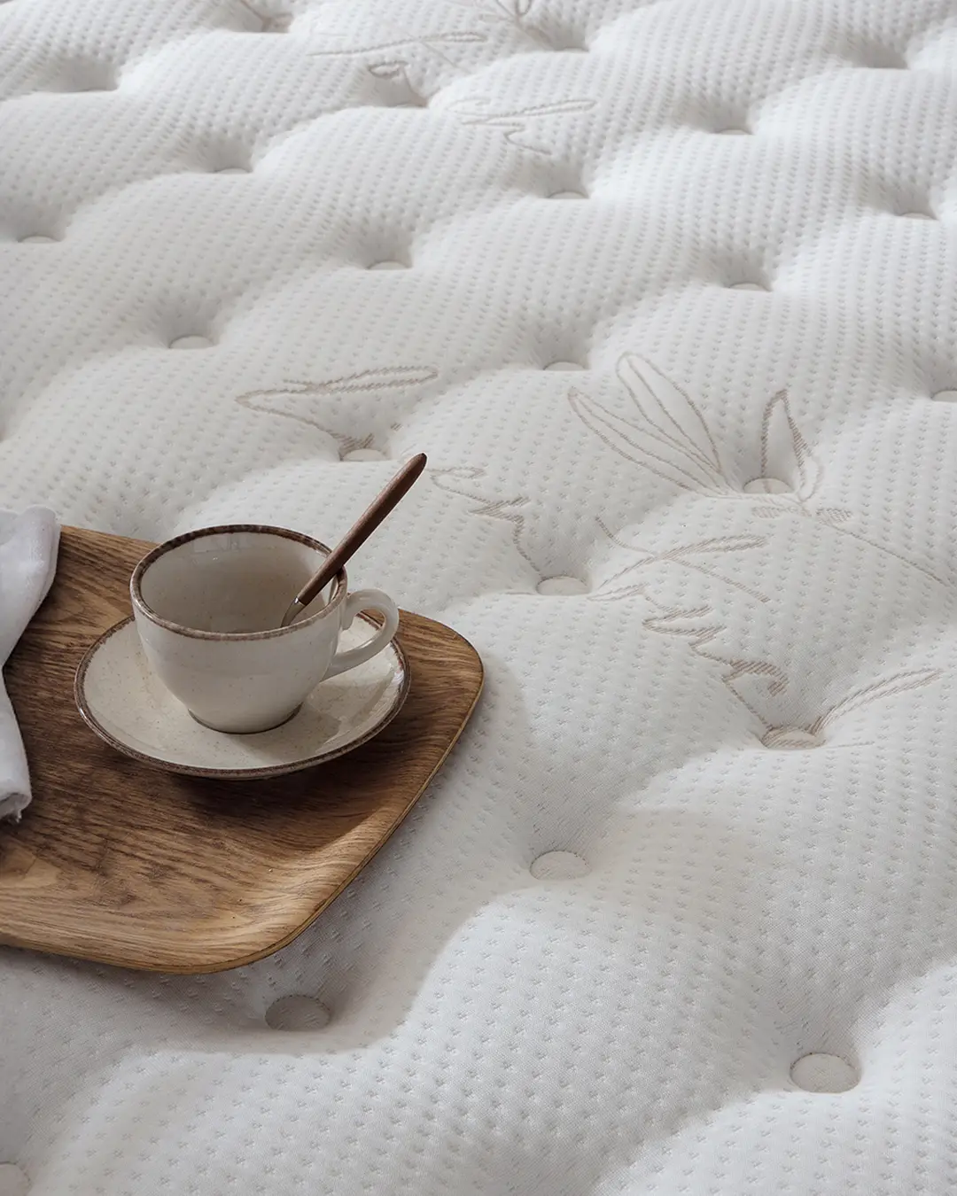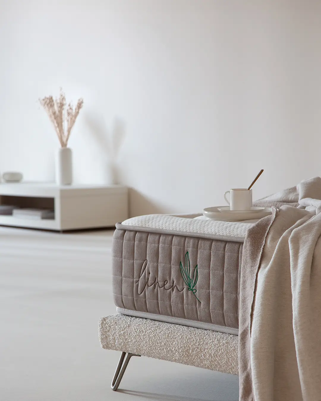 El lino tiene una cualidad especial: se siente ligero, con una textura natural y una presencia elegante. Pero, sobre todo, aporta una sensación de frescura al contacto, como si el colchón “respirara” desde el primer momento. Esa ligereza se traduce en un descanso menos cargado, con más sensación de aire y mayor comodidad a lo largo de la noche.