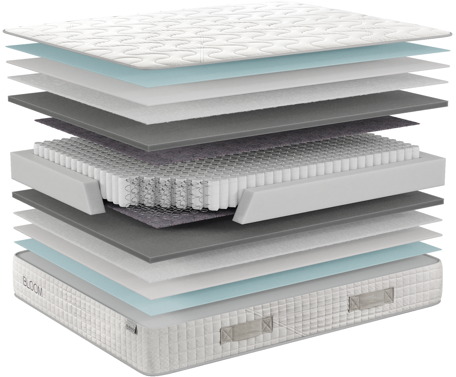 El colchón Bloom, de la serie Pocket Spring, está diseñado para ofrecer un descanso equilibrado, confortable y duradero. Su composición combina materiales de calidad con un sistema de muelles ensacados, garantizando soporte ergonómico, independencia de lechos y una gran adaptabilidad.
