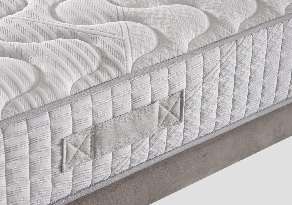 Todo el bloque queda reforzado con un box perimetral en HR 40kg Dura, que incrementa la solidez, evita deformaciones laterales y prolonga la durabilidad del colchón. Para mayor comodidad, dispone de 4 asas laterales, que facilitan su manipulación y rotación. Una elección ideal para quienes desean un colchón versátil, estable y con materiales de primera calidad, pensado para ofrecer un descanso ergonómico y duradero.