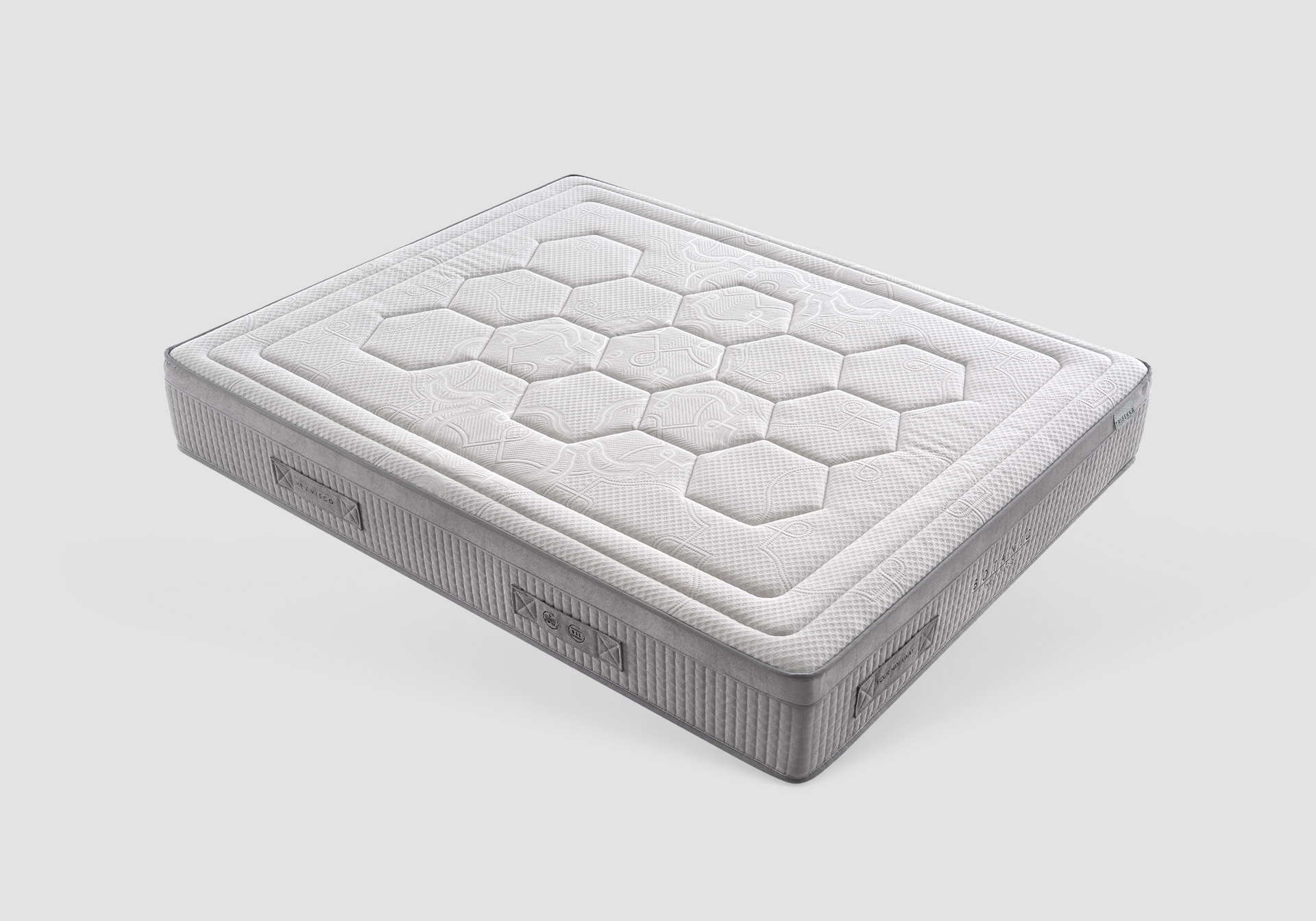 En sus capas superiores incorpora Visco Therm Essence de 50kg, una viscoelástica que ofrece una acogida progresiva y envolvente. Su núcleo está formado por Visco Soya Memory de 50kg, que se adapta al cuerpo con precisión, alivia los puntos de presión y proporciona un descanso más envolvente y reparador. Cuenta con HR de 28kg perfilado, que potencia la ergonomía, mejora la transpiración interna y asegura una base firme y estable.