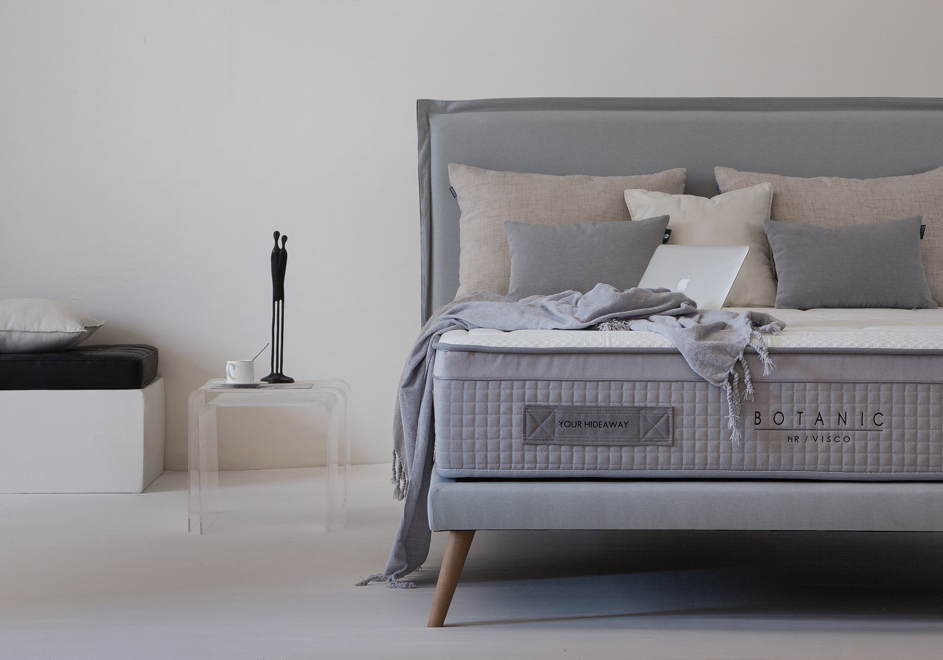 En su interior, incorpora espuma viscoelástica, que se adapta al cuerpo aliviando los puntos de presión y proporcionando una acogida envolvente. Junto a ella, un núcleo de alta densidad garantiza la firmeza necesaria para mantener la correcta postura, aportando además estabilidad y resistencia con el paso del tiempo.