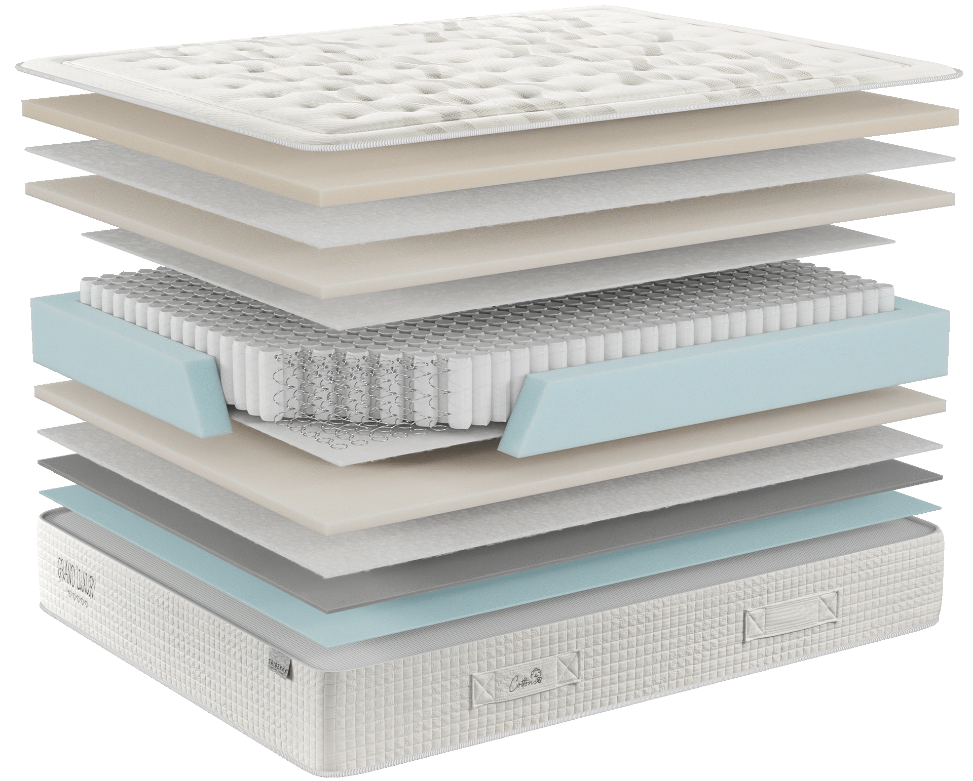 El colchón Grand Luxury Soft, de la serie Pocket Spring, está diseñado para ofrecer un descanso de alto nivel, combinando confort, adaptabilidad y una agradable suavidad en cada uso. Su cuidada composición integra materiales de gran calidad junto con un sistema avanzado de muelles ensacados, garantizando soporte ergonómico, frescor y una experiencia de sueño envolvente.